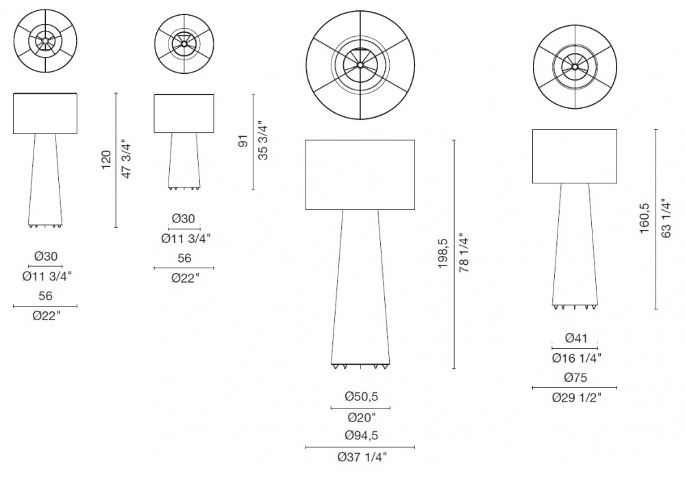 | Leuchtmittel | PO_9811 paralume max 60W E27 - base max 40W E27; PO_9810 paralume max 75W E27 - base max 60W E27; PO_9815 paralume max 100W E27 - base max 75W E27; PO_9812 paralume max 150W E27 - base max 100W E27; |