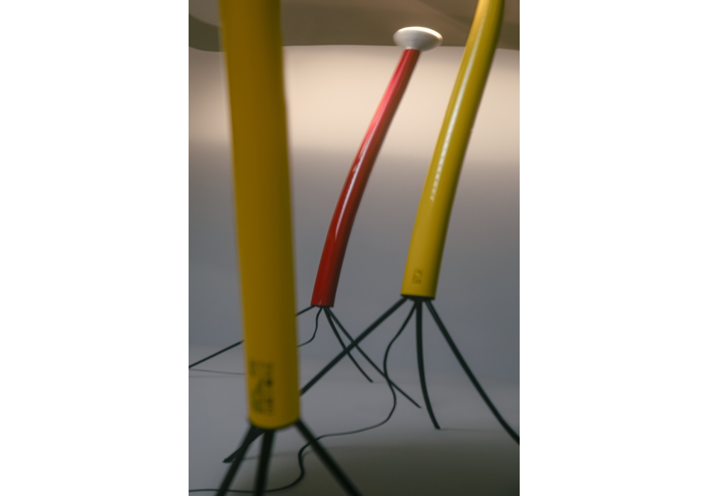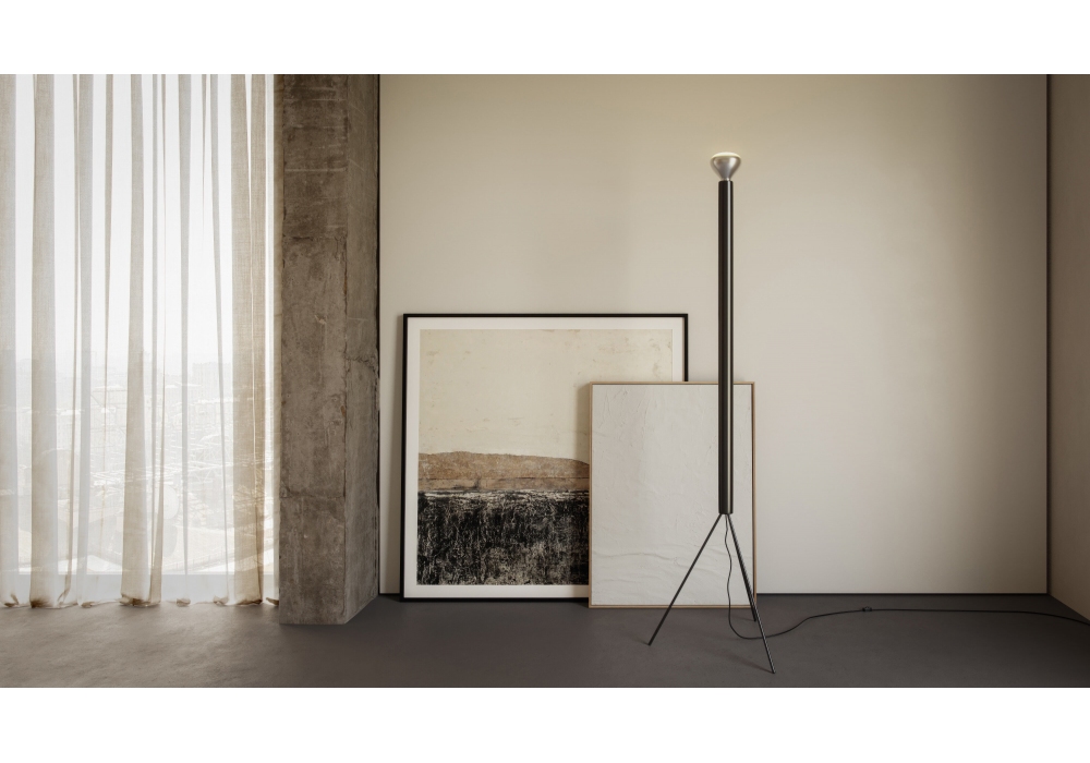 Luminator von Achille & Pier Giacomo Castiglioni für Flos entworfen, ist eine Stehleuchte mit indirektem Licht. Leuchtmittel mit Reflektor. Schaft aus flüssiglackiertem Eisen. Beine aus flüssiglackiertem verzinktem Metall. Integrierter Schalter (fernbedienbar). Leuchtmittel nicht enthalten.
