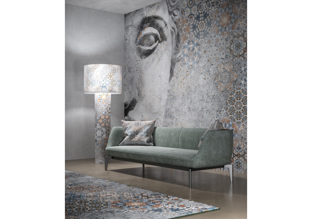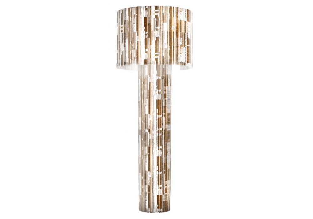 Lolita, von Momenti Lab für Momenti entworfen, ist eine Stehleuchte, die mit technischem Gewebe aus bedruckter „Tecno Fibre“-Glasfaser bezogen ist. Schutzart IP20. Erhältlich in verschiedenen Ausführungen.