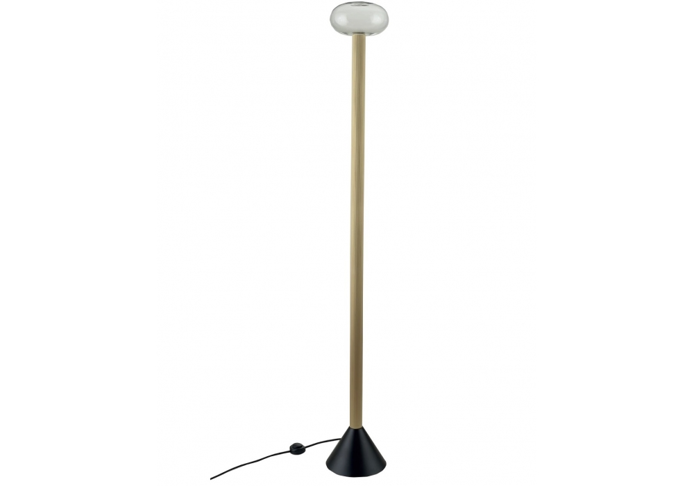 Milù von Pianca entworfen, ist eine Stehleuchte mit transparenter oder opalfarbener Glaskappe und gerändelter Röhrenstruktur. Verfügbar in mehreren Ausführungen.