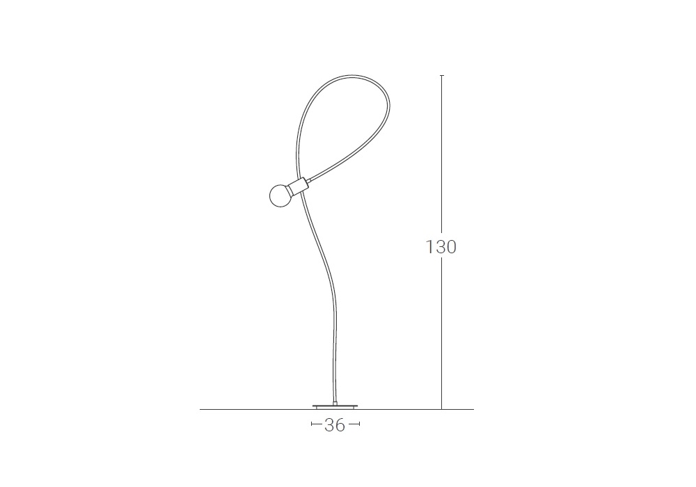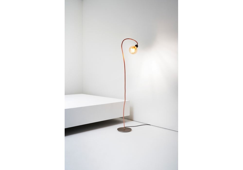 Pato von Franco Zavarise für Zava entworfen, ist eine Stehleuchte aus Eisen, Messing und Kupfer. Das Lampenrohr ist nur in Kupferausführung erhältlich, es kann nach Belieben gebogen werden.