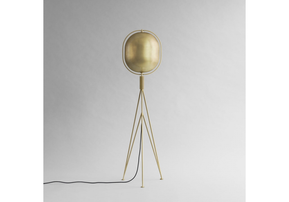 Pearl von Kristian Sofus Hansen & Tommy Hyldahl für 101 Copenhagen entworfen, ist eine Stehleuchte aus vermessingtem Metall und Opalglas-Diffusor.