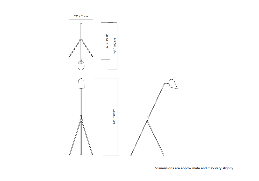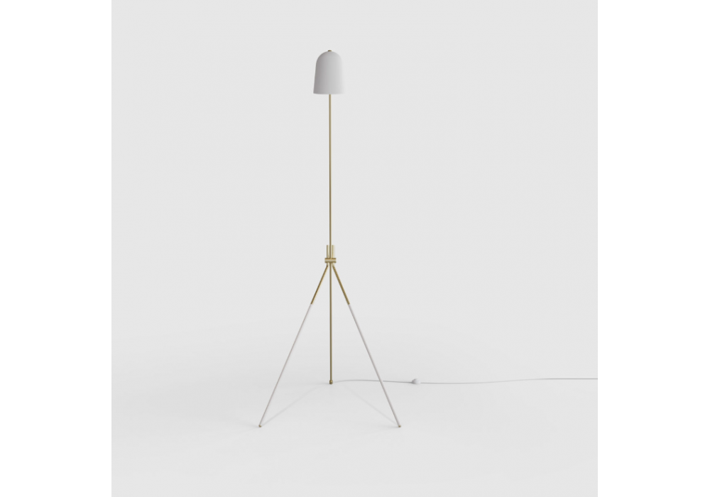 Cliff 02, entworfen und hergestellt von Lambert & Fils, ist eine Stehleuchte mit einer Struktur aus Messing und pulverbeschichtetem Stahl und einem Lampenschirm aus pulverbeschichtetem Aluminium. Erhältlich in verschiedenen Ausführungen.