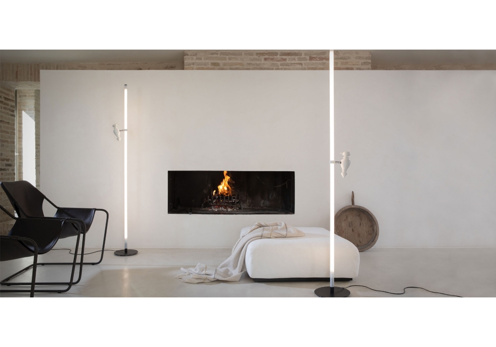 Accipicchio, von Matteo Ugolini für Karman entworfen, ist eine LED-Stehleuchte mit Struktur aus mattschwarzem Aluminium und Diffusor aus satiniertem weißem Glas. Zubehör erhältlich. Interne Benutzung.