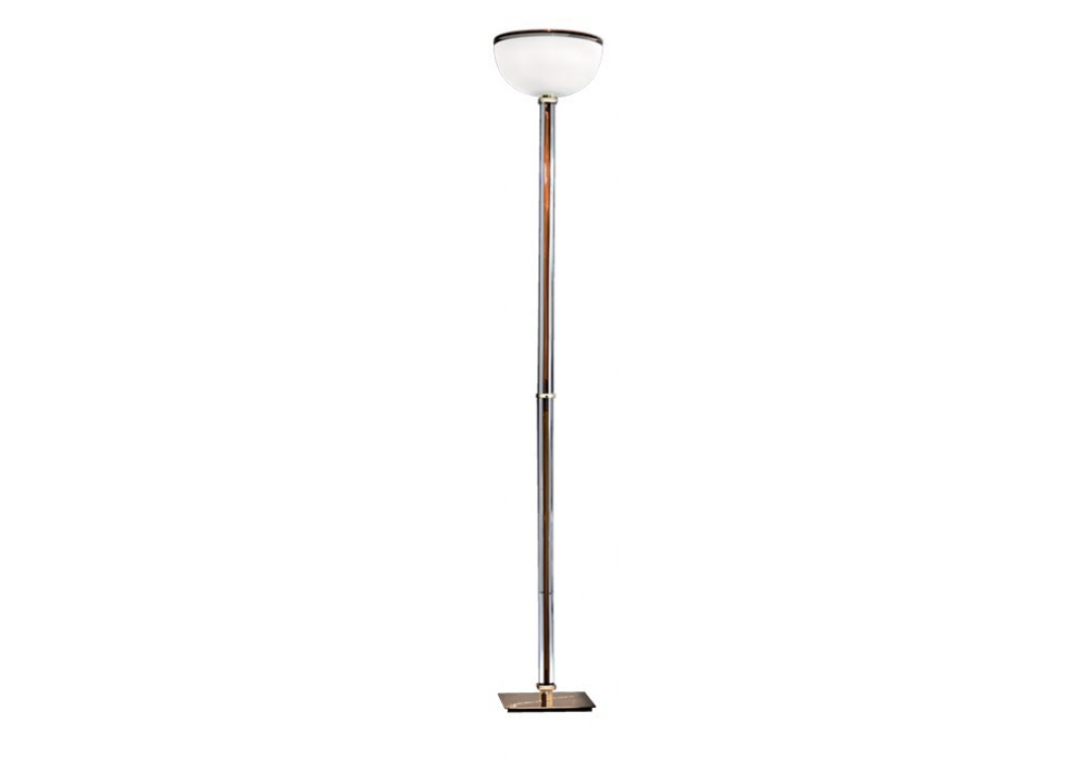 Tolboi, entworfen und hergestellt von Venini, ist eine Stehleuchte mit mundgeblasener Glasstruktur, auf die ein warmfarbiger Kern aufgebracht wird, die in 2 Ausführungen erhältlich ist. Die Struktur ist aus goldenem Metall.