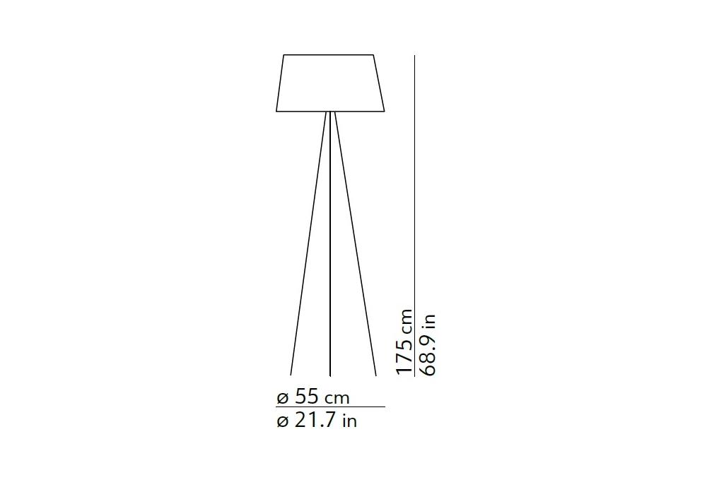 Tripod von Cristophe Pillet für Kundalini entworfen, ist eine Stehleuchte mit Struktur aus weiß lackiertem Metall, Lampenschirm aus feuerfestem Stoff, der durch eine mikroperforierte und lackierte Metallscheibe geschlossen wird. Verfügbar in verschiedenen Ausführungen.