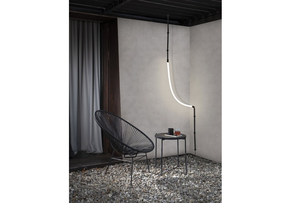 Leda von Luca De Bona & Dario De Meo für Karman entworfen, ist eine Stehleuchte mit Struktur aus mattschwarzem oder mattbronzenem Aluminium und weißem Silikondiffusor. Interne Benutzung.