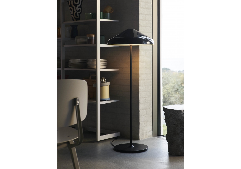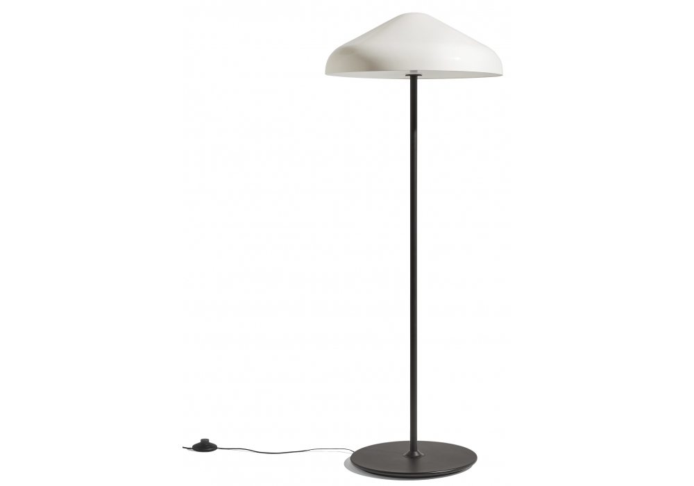 Pao Steel von Naoto Fukasawa für Hay entworfen, ist eine Stehleuchte mit Schirm aus glänzend lackiertem Stahl und Diffusor aus spritzgegossenem opaleszierendem Acryl (PMMA). Fuß aus Druckguss-Aluminium mit Pulverbeschichtung. Geflochtenes Gewebekabel mit Silikonisolierung. Verfügbar in verschiedenen Ausführungen.