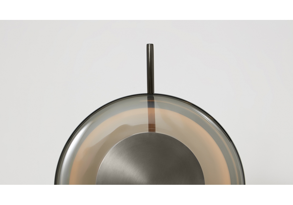 Pendulum von CTO Lighting entworfen, ist eine LED-Stehleuchte, die aus einem skulpturalen Stab aus Messing besteht und auf einem soliden Sockel aus Nero Marquina-Marmor basiert, der mit satiniertem Messing oder Bronze erhältlich ist. Im Inneren des handgebogenen Schirms aus mundgeblasenem Glas befindet sich ein Kern aus integriertem LED-Licht, das gedimmt werden kann.