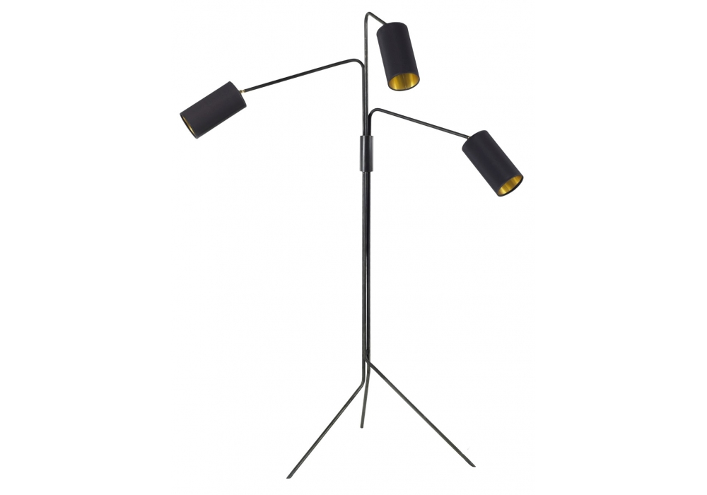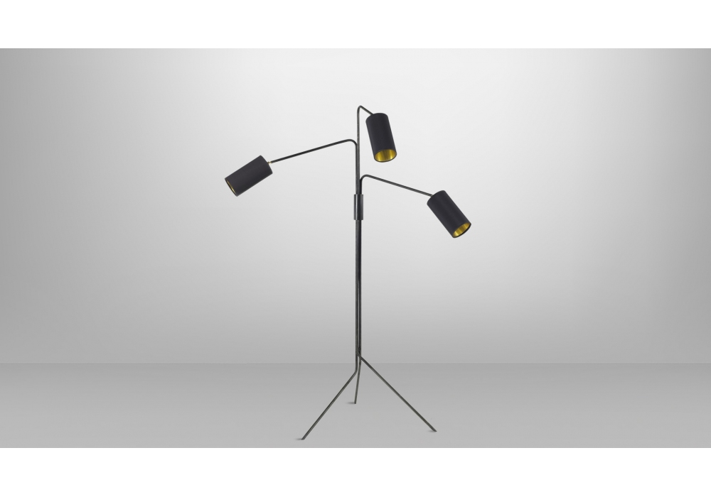Array Cotton von CTO Lighting entworfen, ist eine Stehleuchte aus Bronze mit Details aus satiniertem Messing und Lampenschirmen aus schwarzer Baumwolle mit goldenem Futter.