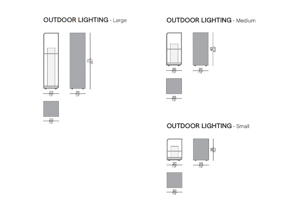 | Abmessungen | - 20 x 20 x H 73 cm; - 20 x 20 H 43 cm; - 20 x 20 x H 28 cm. |