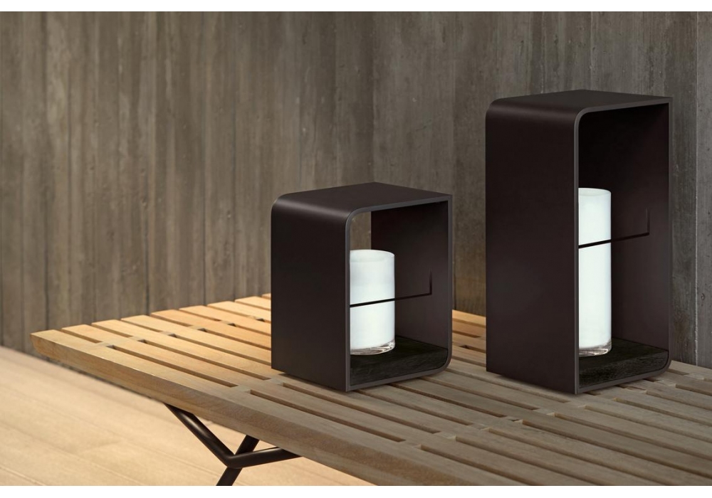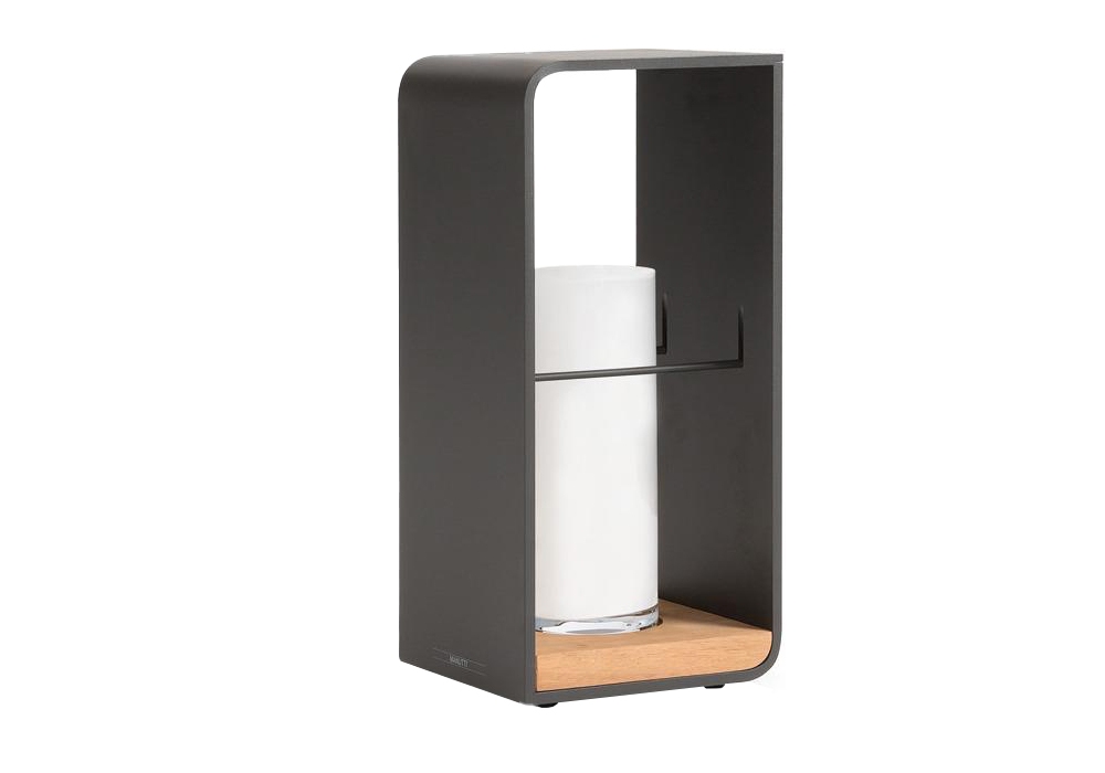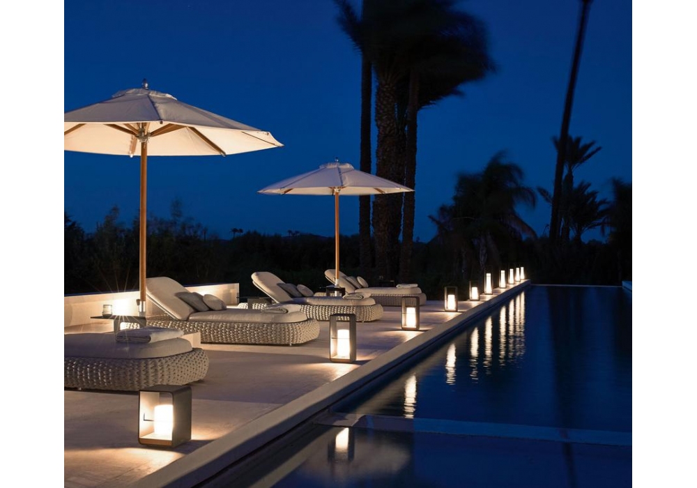 Lumo von Koen Van Extergem für Manutti entworfen, ist eine LED-Stehleuchte für den Außenbereich mit einer Struktur aus Aluminium und Holz. Erhältlich in verschiedenen Ausführungen und Größen.