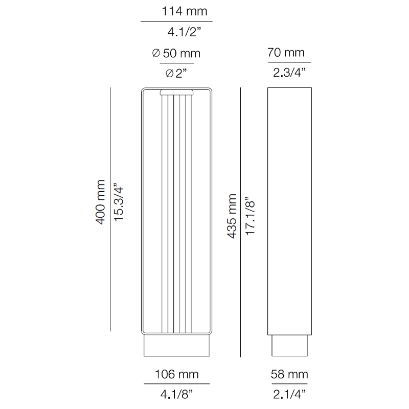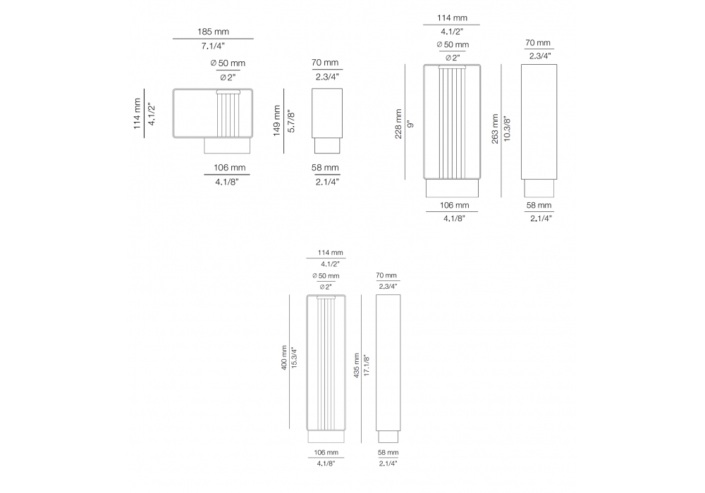 | Abmessungen | 18,5 x 7 x H 14,9 cm; 11,4 x 7 x H 26,3 cm; 11,4 x 7 x H 43,5 cm. |