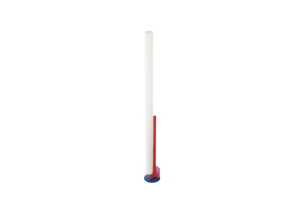 Model T von Francesca Smiraglia für Kundalini entworfen ist eine dimmbare Stehleuchte mit röhrenförmigem Opalmethacrylat-Diffusor und lackierter Metallstruktur.