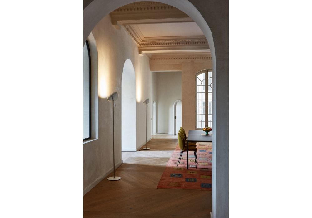 Copérnica P190 von Ramírez i Carrillo für Marset entworfen, ist eine Stehleuchte aus Stahl und einem Aluminiumdiffusor. Erhältlich in verschiedenen Ausführungen.