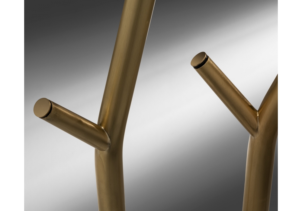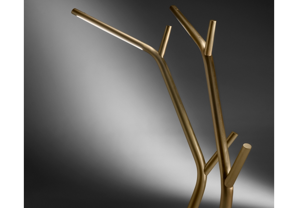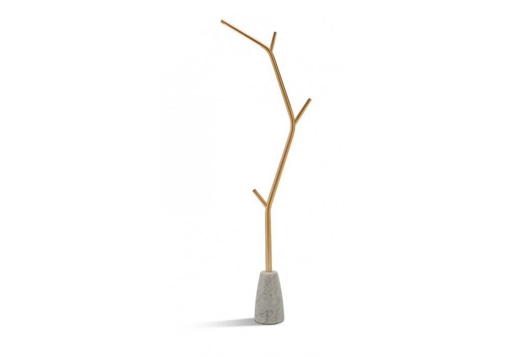 Aira von Marcantonio für Casamania & Horm entworfen, ist eine Stehleuchte mit satingoldfarben lackierter Messingstruktur und Marmorsockel.