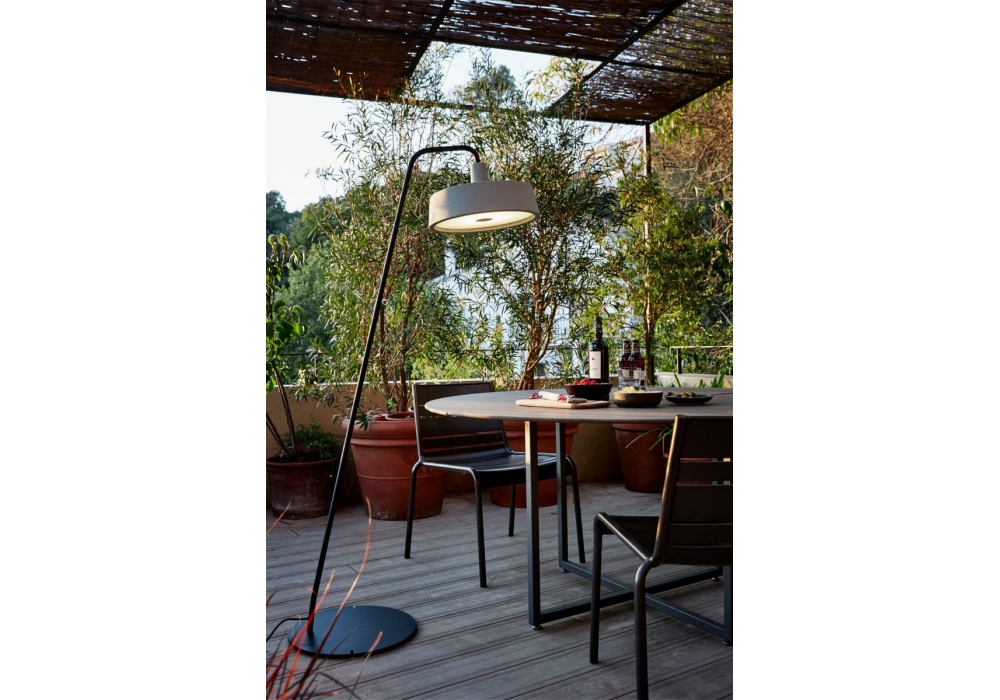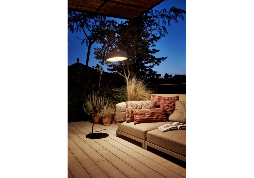Soho 38 P von Joan Gaspar für Marset entworfen, ist eine Stehleuchte aus Metall und Edelstahl, Diffusor aus opalem Methacrylat. Erhältlich in verschiedenen Ausführungen. Auch für den Außenbereich geeignet.
