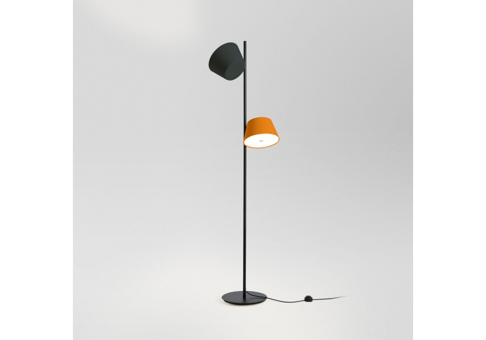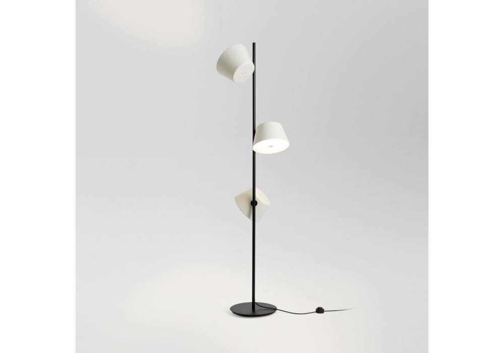 Tam Tam P von Fabien Dumas für Marset entworfen, ist eine Stehleuchte mit Metallstruktur, Aluminiumschirm und Methacrylat-Diffusor. Erhältlich in verschiedenen Ausführungen und Ausführungen.