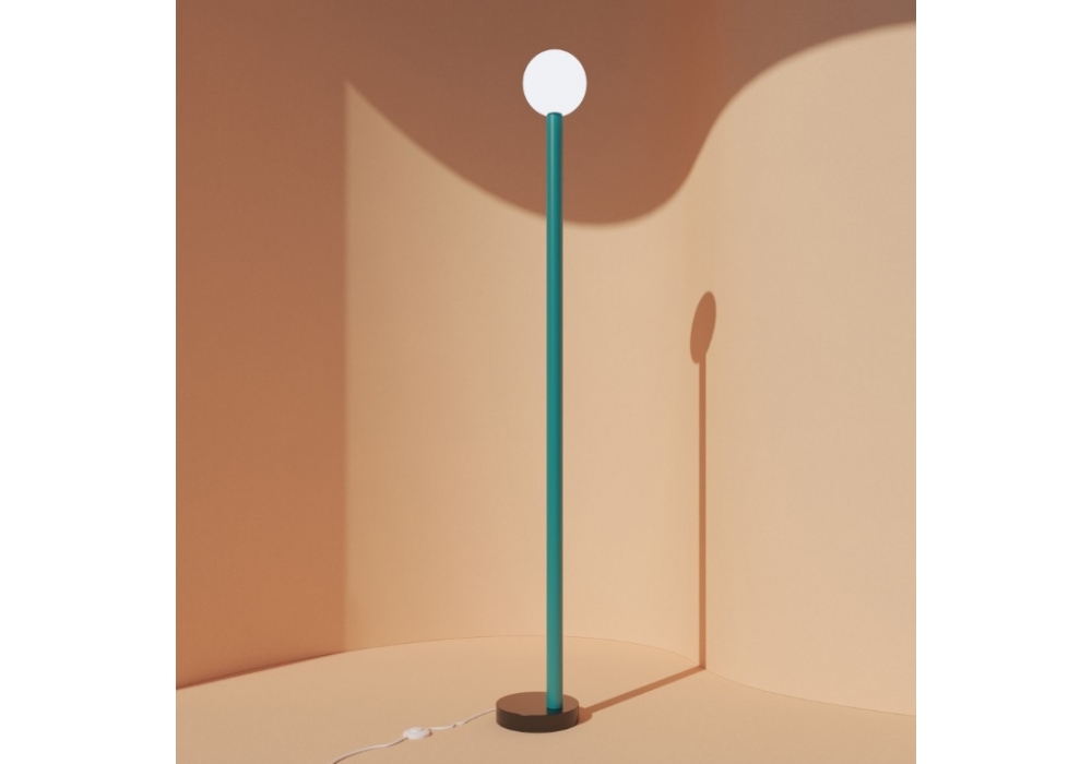 Off Center von Atelier Areti entworfen, ist eine Stehleuchte aus lackiertem Metall, erhältlich in verschiedenen Ausführungen. Auf Wunsch ist es auch möglich, die Farben von Rohr und Sockel individuell anzupassen.