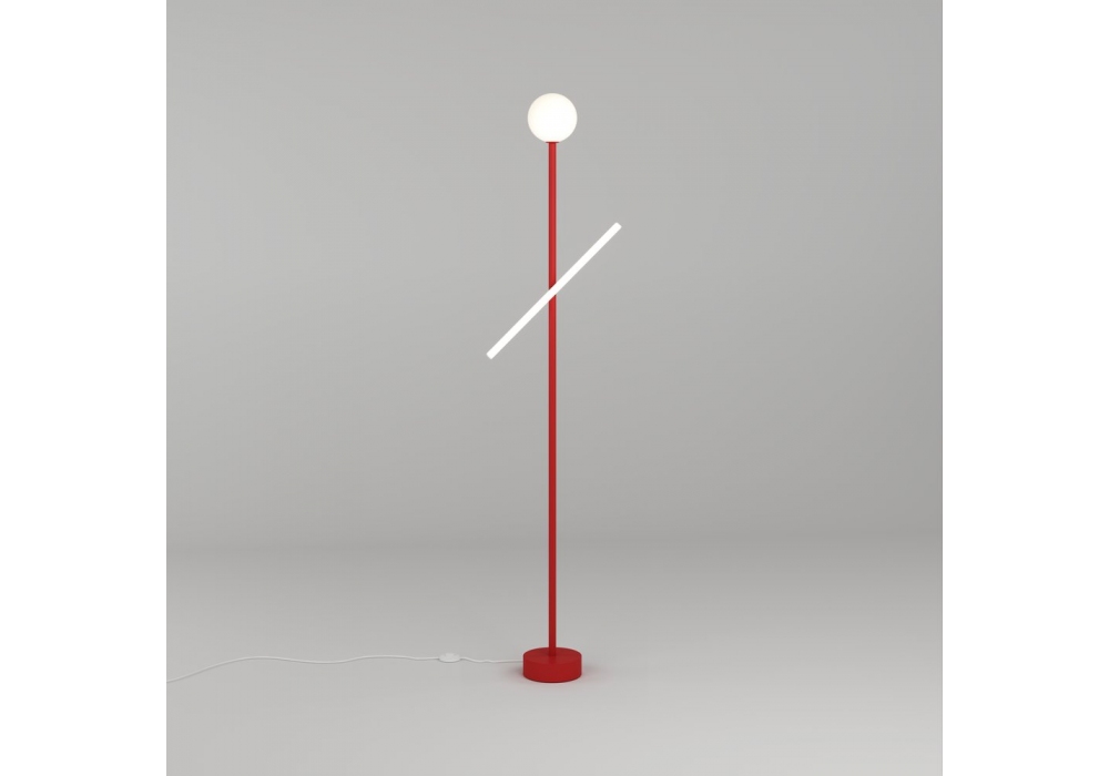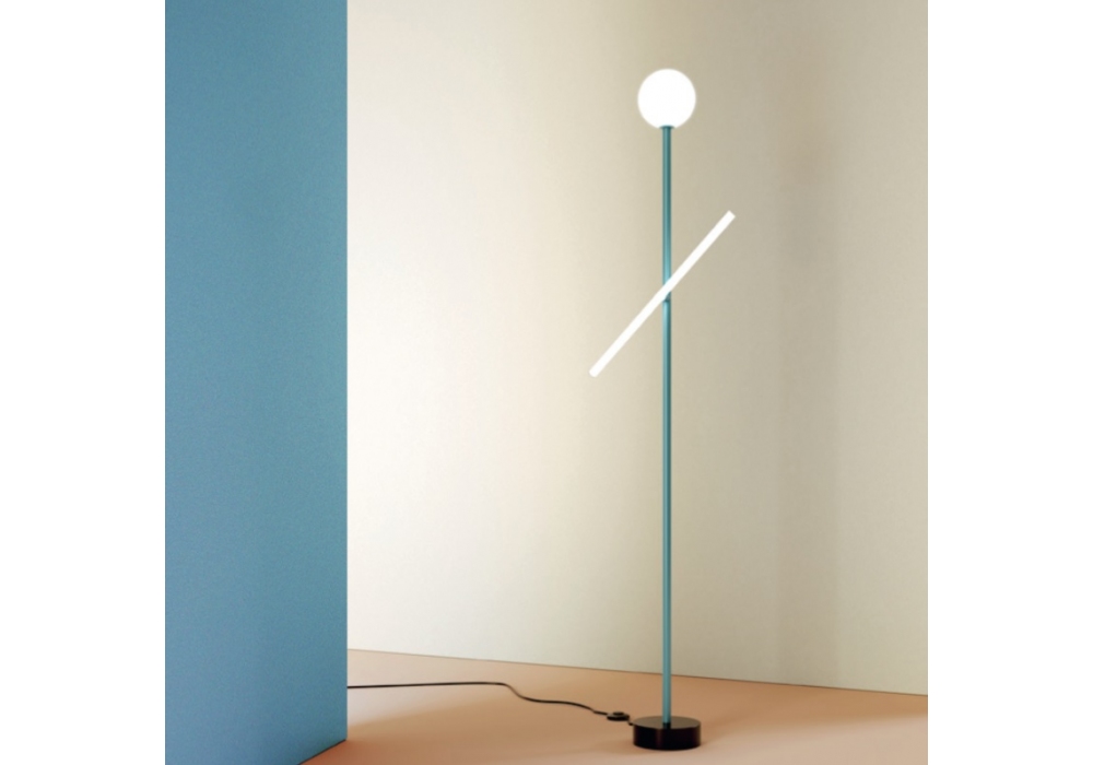 Tube and Globe von Atelier Areti entworfen, ist eine Stehleuchte aus lackiertem Metall, erhältlich in verschiedenen Ausführungen. Auf Wunsch ist es auch möglich, die Farben von Rohr und Sockel individuell anzupassen.
