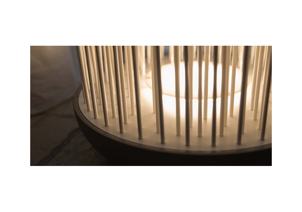 Don't Touch, von Matteo Ugolini für Karman entworfen, ist eine Stehleuchte mit grauem Technopolymersockel und undurchsichtigen weißen PVC-Stäben. Interne Benutzung.
