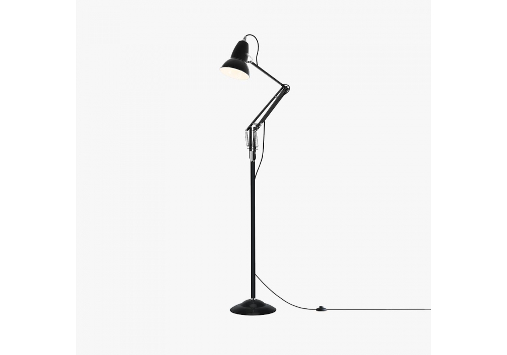 Original 1227 von George Carwardine für Anglepoise entworfen, ist eine Stehleuchte mit verchromtem Stahlstiel, Aluminium-Lampenschirm und -Armen und Gusseisensockel mit Stahlabdeckung. Erhältlich in verschiedenen Ausführungen.
