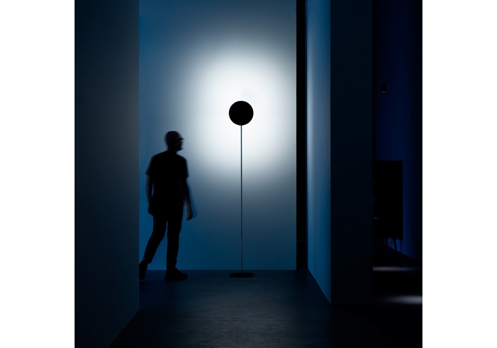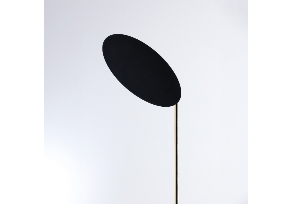 Stop von Davide Groppi entworfen, ist eine Stehleuchte mit verstellbarem Diffusor in mattschwarzem Gravity Black und mattschwarzem Sockel. Stiel aus poliertem Gold oder poliertem Chrommetall. Dimmer entlang des Kabels. Treiber mit Stecker enthalten. Eingang 110-240 V – 50/60 Hz. Ausgang 24 V DC – 36 W – IP20.