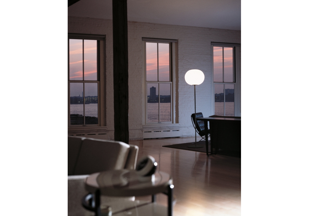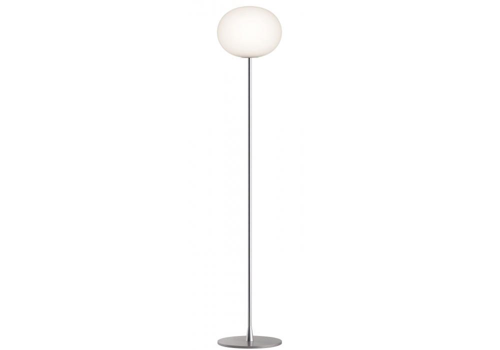 Glo-Ball F2 von Jasper Morrison für Flos entworfen, ist eine Stehleuchte mit diffusem Licht. Der Diffusor besteht aus mundgeblasenem, ummanteltem Opalglas mit säuregeätzter Oberfläche und einer Gewindemutter aus galvanisch beschichtetem Aluminiumdruckguss. Der Sockel besteht aus dickem Stahl, der Schaft aus Stahlrohr und die Diffusorhalterung aus Aluminiumdruckguss, alles in Liquid Grey lackiert. Das Kabel ist mit einem elektronischen Dimmer ausgestattet, der die Lichtintensität stufenlos regelt. Leuchtmittel nicht enthalten.