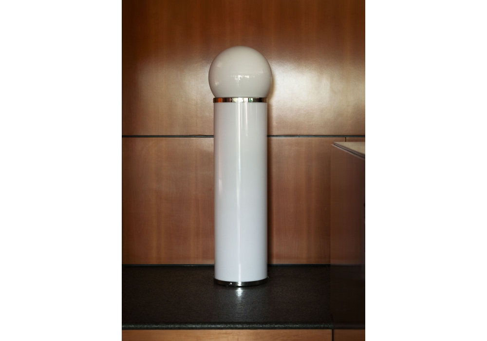 1809, entworfen vom Tacchini Design Studio, ist eine Stehleuchte mit dimmbarer Beleuchtung, die es ermöglicht, das Licht des Körpers und der Kugel separat oder gemeinsam zu steuern und so eine hohe Flexibilität in Nutzung und Atmosphäre zu bieten. Die Kugel aus opalem Glas verbreitet ein weiches, umhüllendes Licht, während die PMMA-Struktur mit verchromten Metalldetails visuelle Leichtigkeit und einen zeitgemäßen Charakter verleiht.