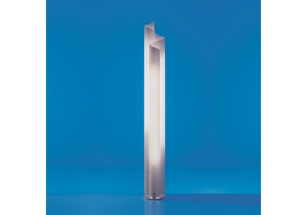 Chimera LED von Vico Magistretti für Artemide entworfen ist eine Stehleuchte mit Sockel und Struktur aus lackiertem Aluminium und Zamak. Die Struktur/Diffusor besteht aus heißgebogenem Opalmethacrylat und schirmt die LED-Lichtquelle ab.
