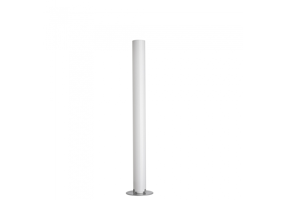 Stylos von Achille Castiglioni für Flos entworfen, ist eine Stehleuchte mit indirektem und diffusem Licht. Sockel aus silberfarben pulverbeschichtetem Stahl. Zylindrischer Diffusor aus extrudiertem opalem Polymethylmethacrylat (PMMA). Die Ein-/Aus-Funktionen der beiden Lichtquellen an den beiden Enden des Diffusors werden über einen am Stromkabel montierten Doppelfußschalter gesteuert. Leuchtmittel nicht enthalten.