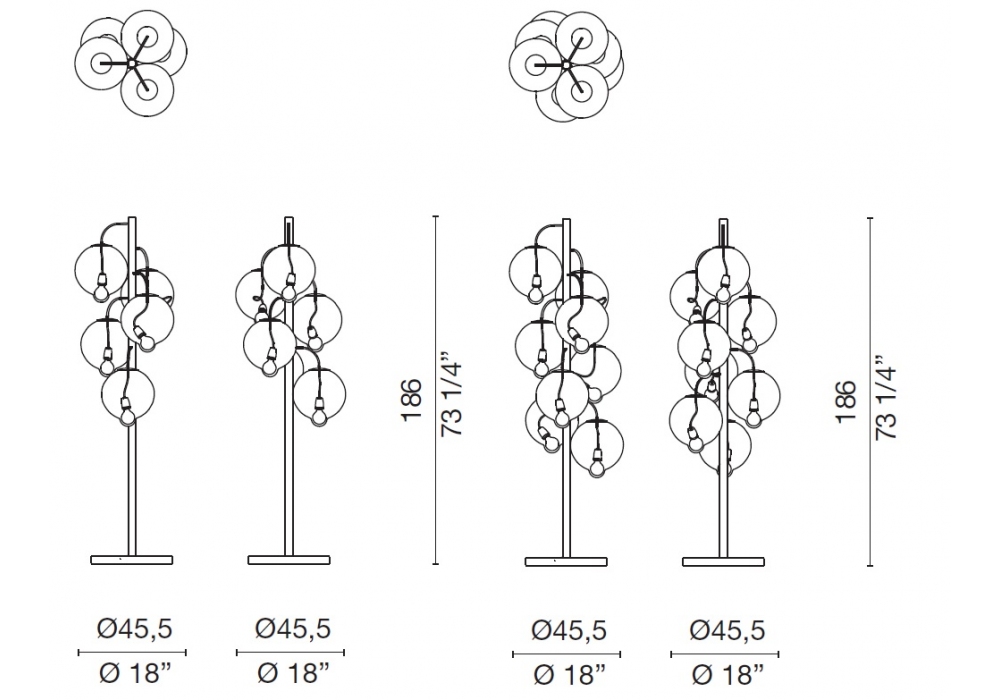Meltdown von Johan Lindstèn für Cappellini entworfen, ist eine Stehleuchte von mit 5 oder 8 farbigen Glasdiffusoren. Erhältlich mit Diffusoren in einfarbiger Ausführung oder mit einer vom Hersteller empfohlenen Farbkombination.