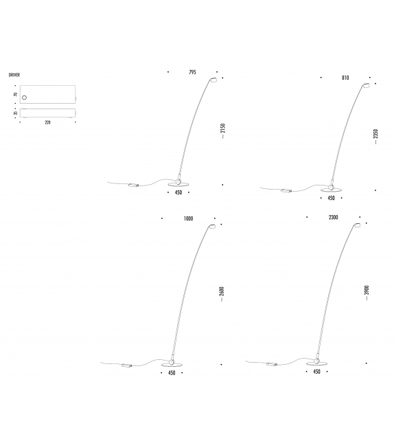 | Abmessungen | Ø 45 x 79,5 x H 215 cm; Ø 45 x 81 x H 235 cm; Ø 45 x 100 x H 260 cm; Ø 45 x 230 x H 390 cm. |