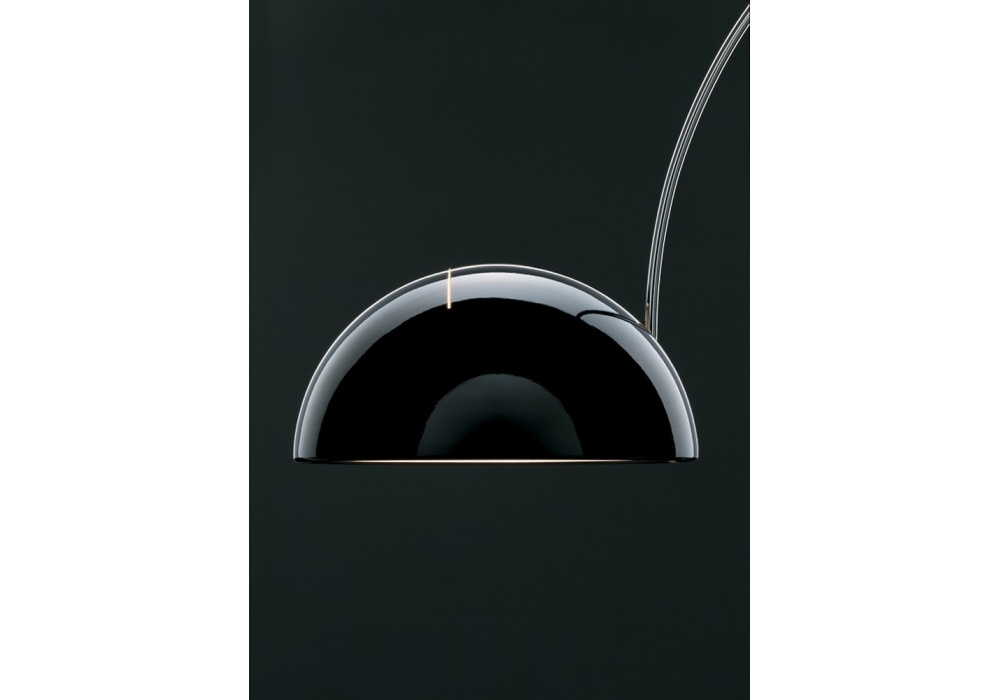 Coupè von Joe Colombo für Oluce entworfen, ist eine Stehleuchte mit runder Basis aus lackiertem Metall und gebogener Stange aus verstellbarem verchromtem Metallrohr. Der Diffusor besteht aus einbrennlackiertem Aluminium und schirmt eine Lichtquelle. Coupè ist in verschiedenen Ausführungen erhältlich.