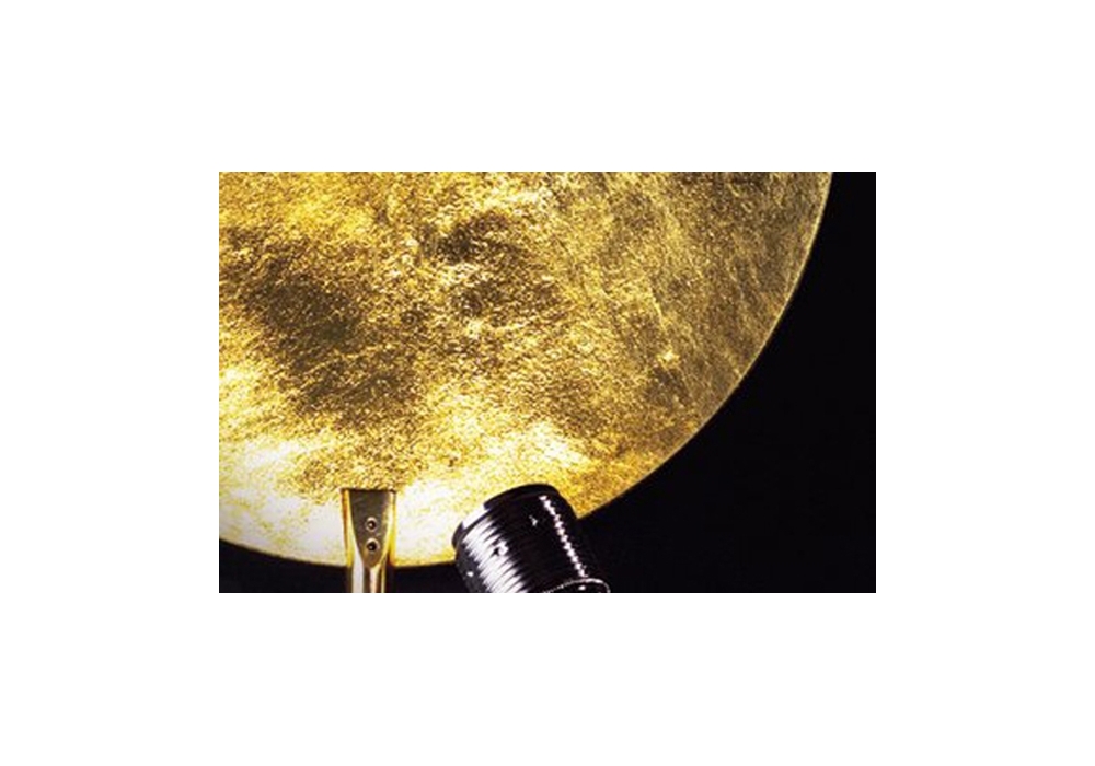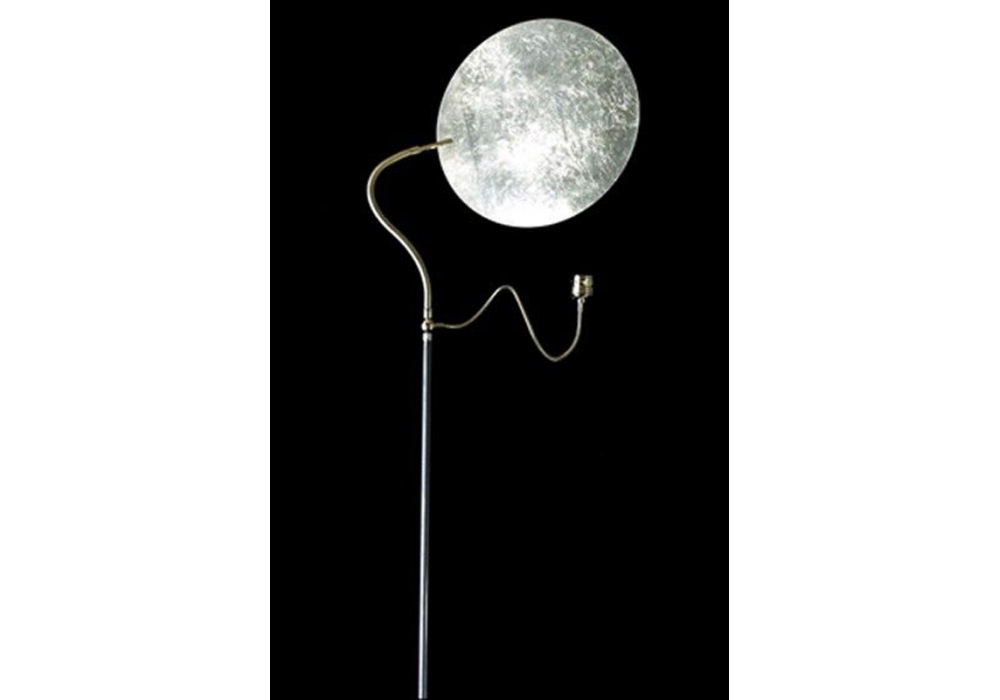 Luce D'Oro F von Enzo Catellani für Catellani & Smith entworfen, ist eine Stehleuchte mit Sockel und Struktur aus gewachstem Roheisen und einer Aluminiumscheibe. Das Kabel ist je nach Farbkombination der Leuchte messing- oder nickelfarben. Die Scheibe ist in der Tat in den Ausführungen erhältlich: Gold, Silber und Kupfer.