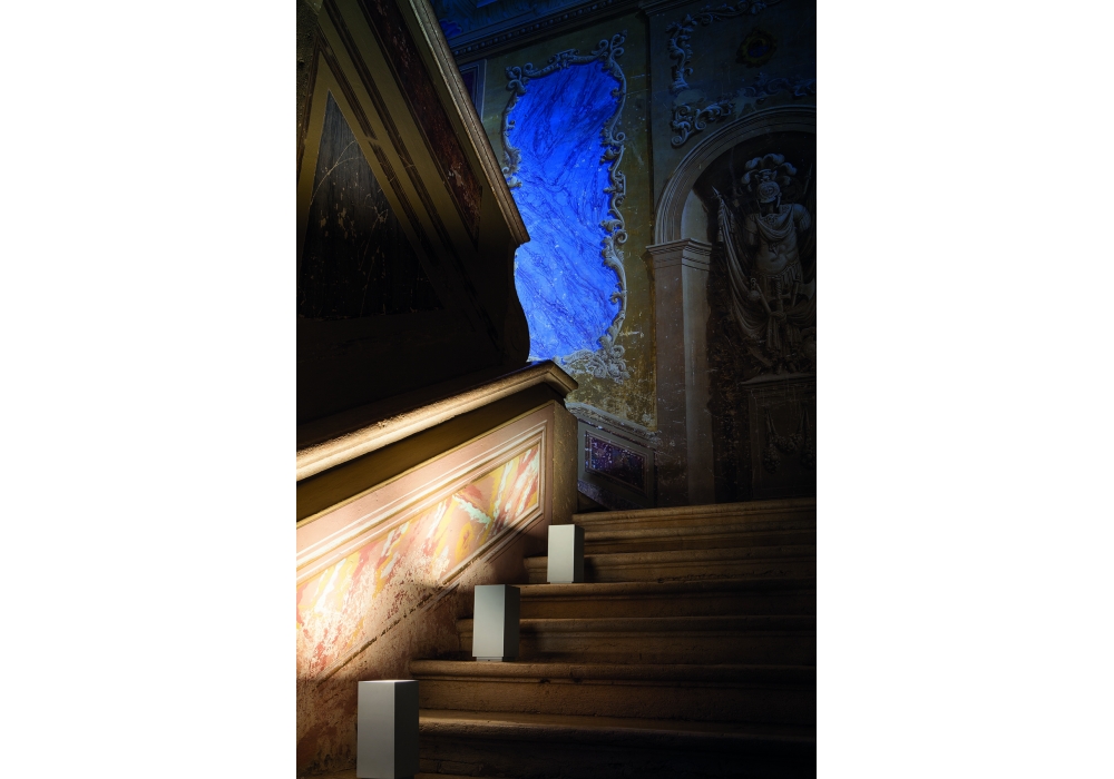 Prisma, von Marco Pollice für Nemo entworfen, ist eine Stehleuchte mit viereckiger Form, die vollständig aus stranggepresstem Aluminium besteht, das weiß lackiert ist. Der Diffusor besteht aus undurchsichtigem weißem Polycarbonat und schirmt eine dimmbare LED-Lichtquelle ab.