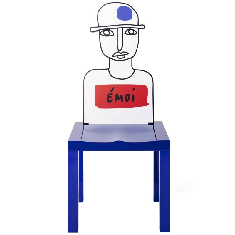 Human Chair von Jean Charles de Castelbajac für Maison Dada entworfen, ist ein Stuhl mit Beinen aus massiver Buche und Sitz aus MDF mit internem Metallkern. Die Rückenlehne ist aus geformtem MDF. Human Chair ist in verschiedenen Modellen und Ausführungen erhältlich.
