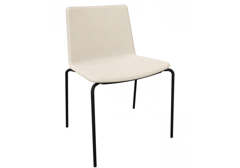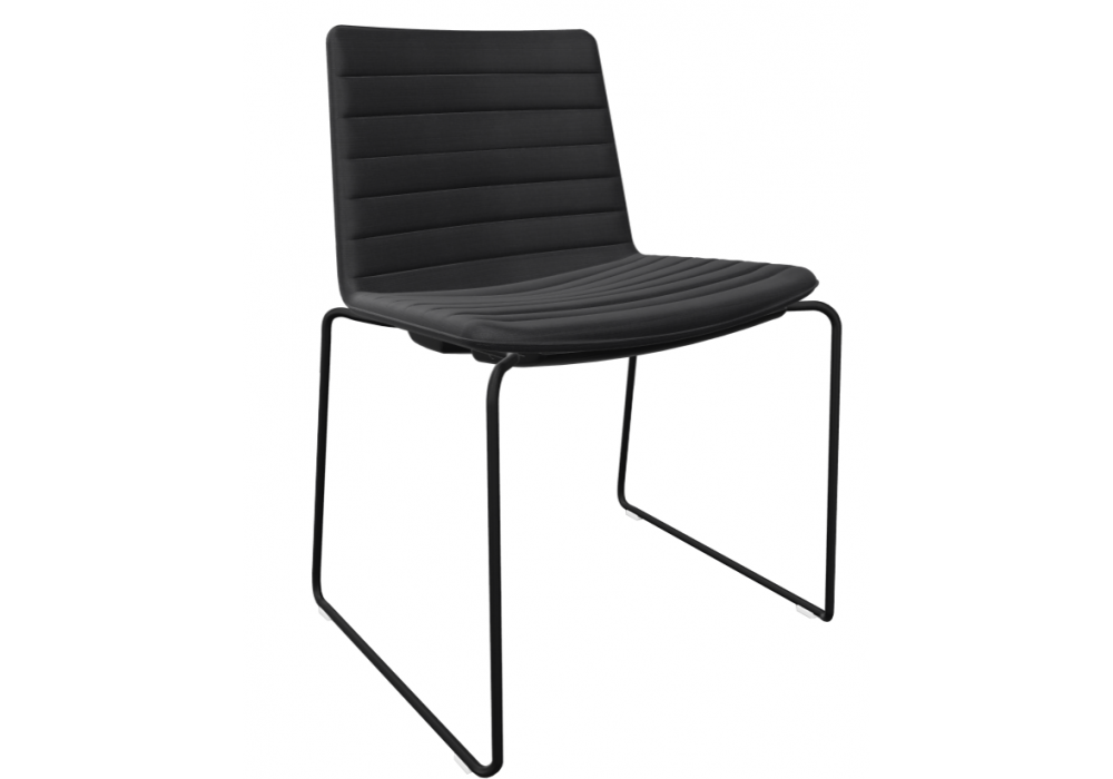 Flex Chair von Piergiorgio Cazzaniga für Andreu World entworfen, ist ein Stuhl mit Kufengestell oder mit 4 Beinen aus Stahlrohr. Thermopolymerschale in mehreren Ausführungen.