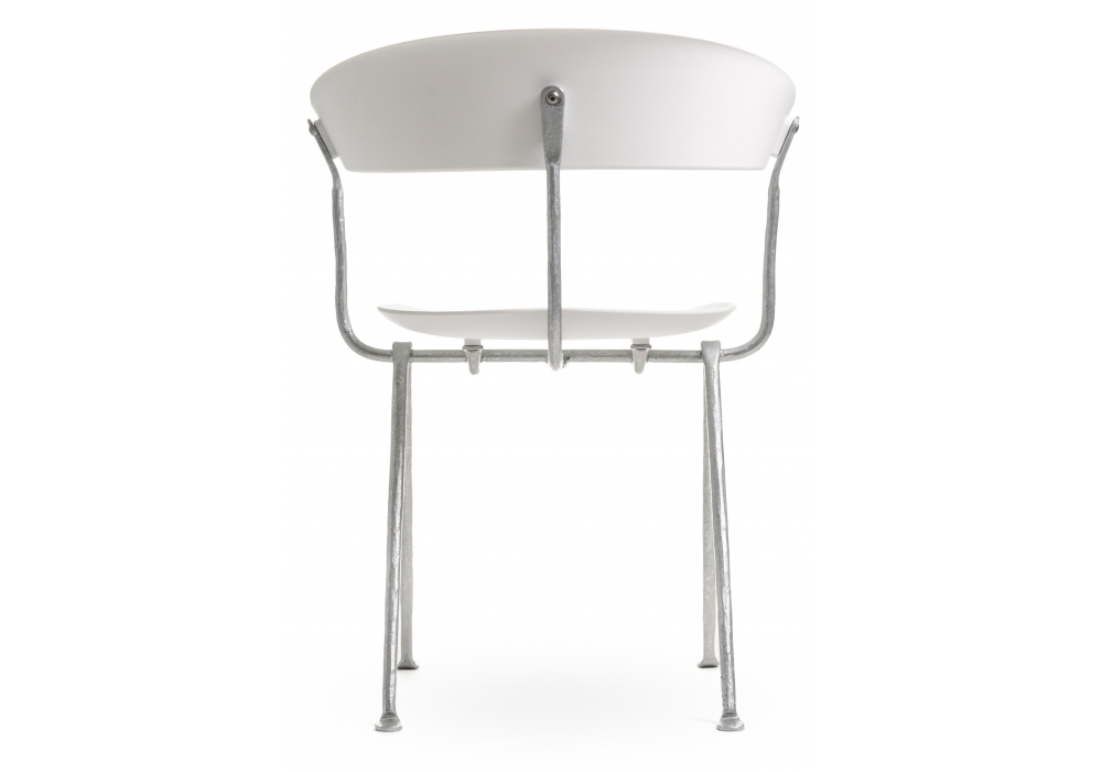 Officina von Ronan & Erwan Bouroullec für Magis entworfen, ist ein Stuhl aus geschmiedetem Eisen, feuerverzinkt oder polyesterlackiert. Sitz und Rückenlehne aus Buchensperrholz oder aus Polypropylen. Auf Anfrage ist das Kissen auch erhältlich.