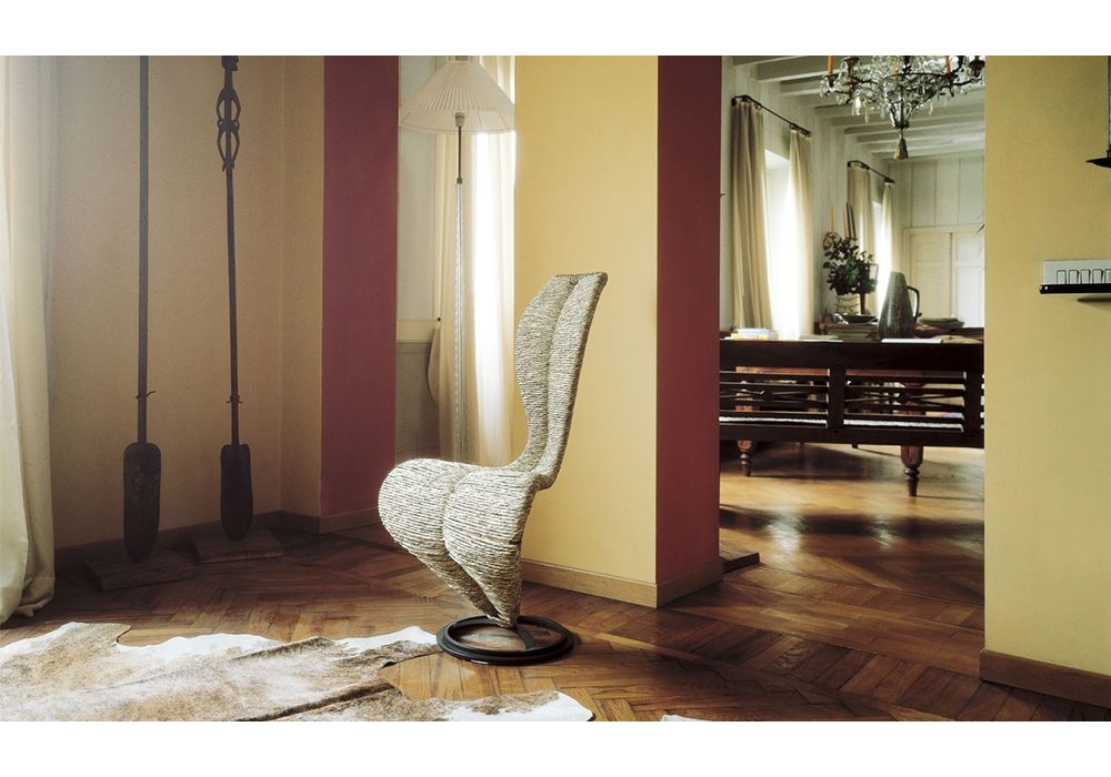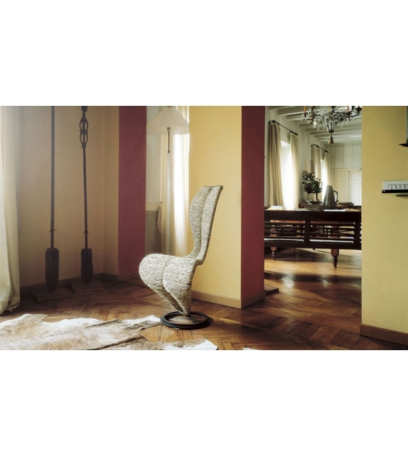 S-Chair von Tom Dixon für Cappellini entworfen, ist ein Stuhl mit Metallgestell und Bezug aus Stroh oder Korbgeflecht.