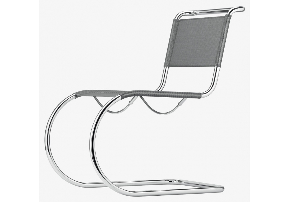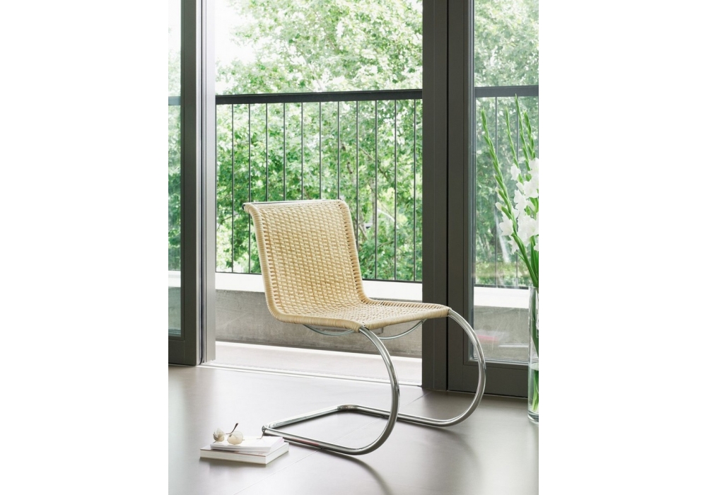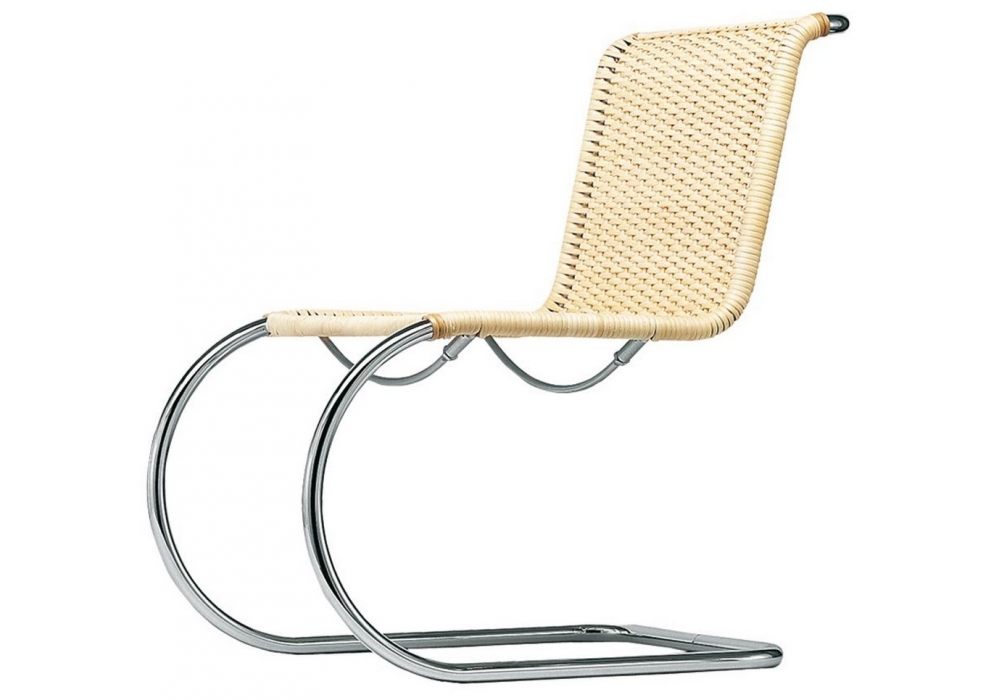 S 533 von Ludwig Mies van der Rohe für Thonet entworfen, ist ein Stuhl mit Gestell aus verchromtem Stahlrohr. Sitz und Rückenlehne aus Korbgeflecht, Leder oder synthetischem Netzgewebe. Erhältlich mit oder ohne Armlehnen.