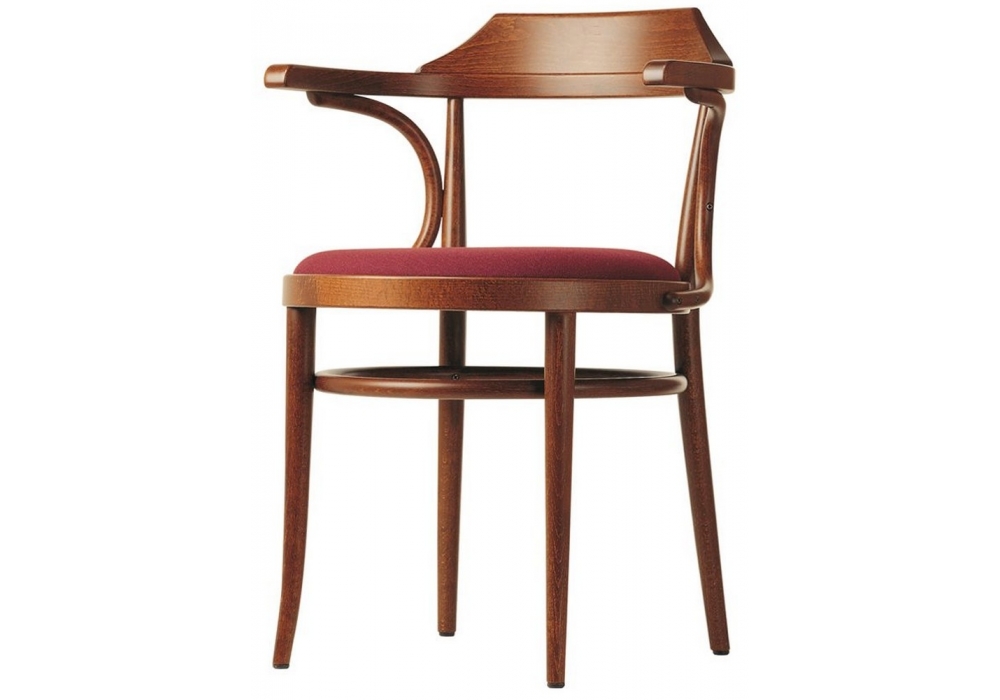 233 P von Gebrüder Thonet für Thonet entworfen, ist ein Stuhl mit Armlehnen aus gebogenem Holz. Gepolsterter Sitz mit Stoff-, Leder- oder Fellpolsterung. Struktur aus Buche, in verschiedenen Ausführungen erhältlich.