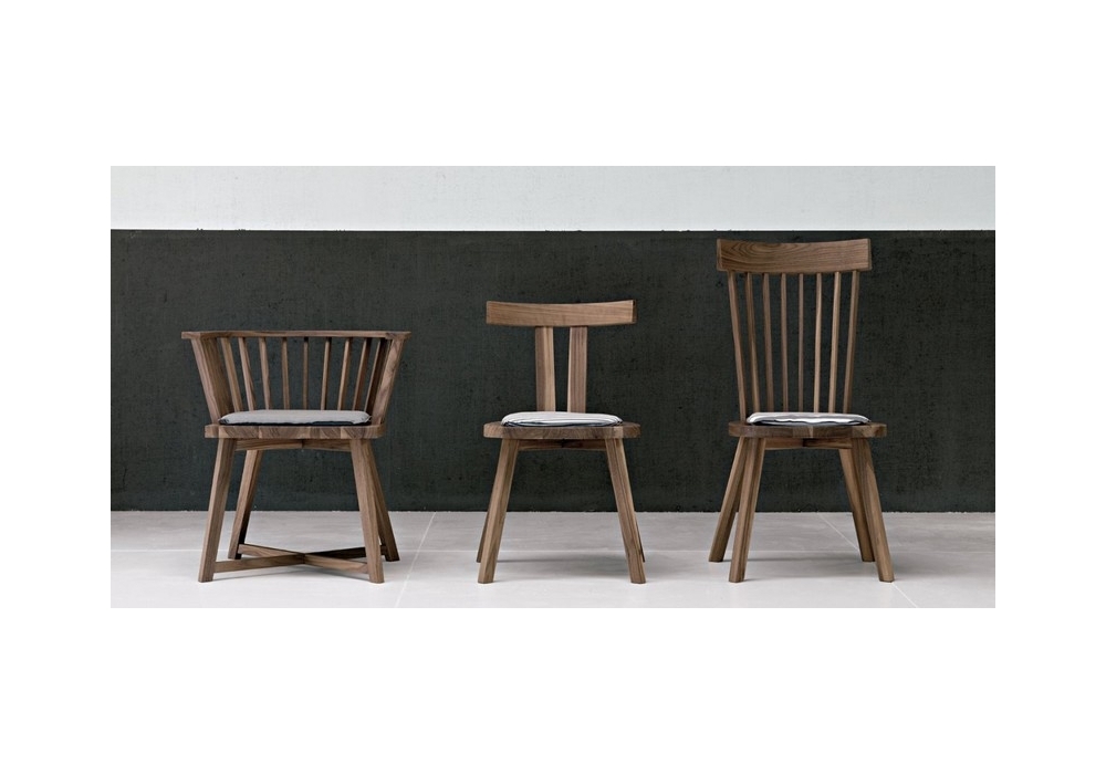 Gray 23 von Paola Navone für Gervasoni entworfen, ist ein Stuhl mit Sitzkissen aus Polyurethanschaum und Stoffbezug. Struktur aus Nussbaum oder Eiche in mehreren Ausführungen.