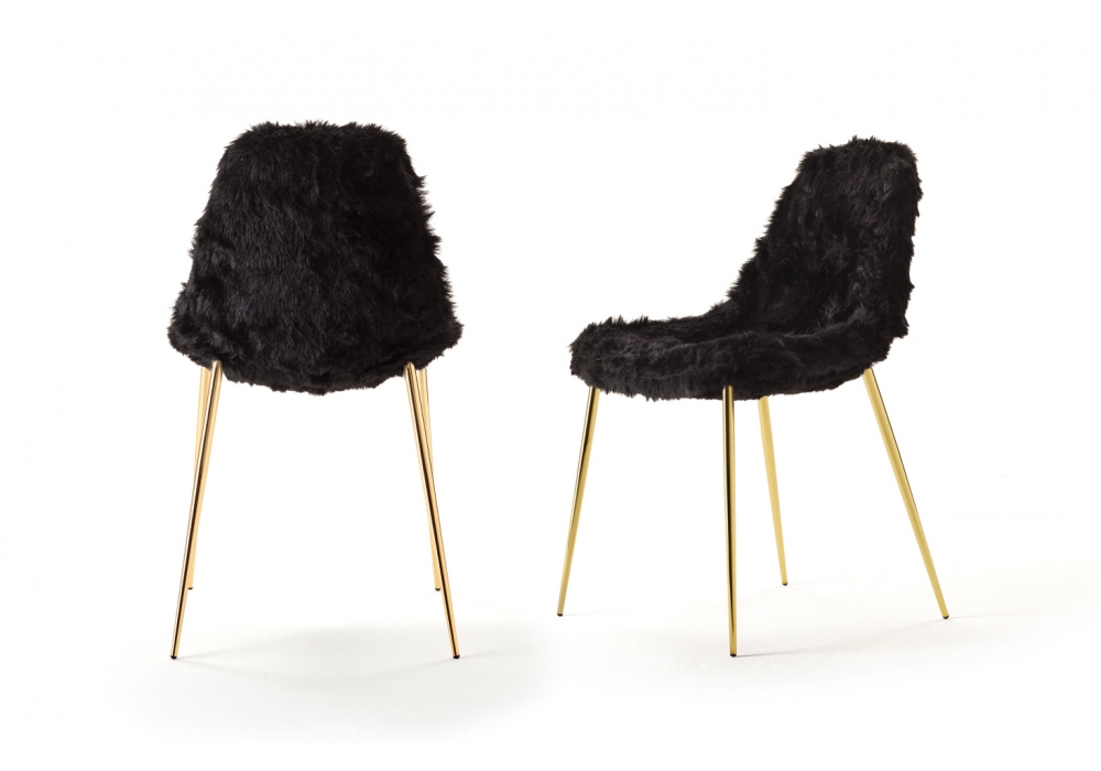 Mammamia Fur von Marcello Ziliani, Sonderedition Lapo Ciatti für Opinion Ciatti entworfen, ist ein Stuhl mit einer gepolsterten Aluminiumdruckgussschale und mit Kunstpelz bezogen. Struktur aus poliertem 24 K Gold. Nicht abziehbar, nicht stapelbar. Verfügbar in mehreren Ausführungen.