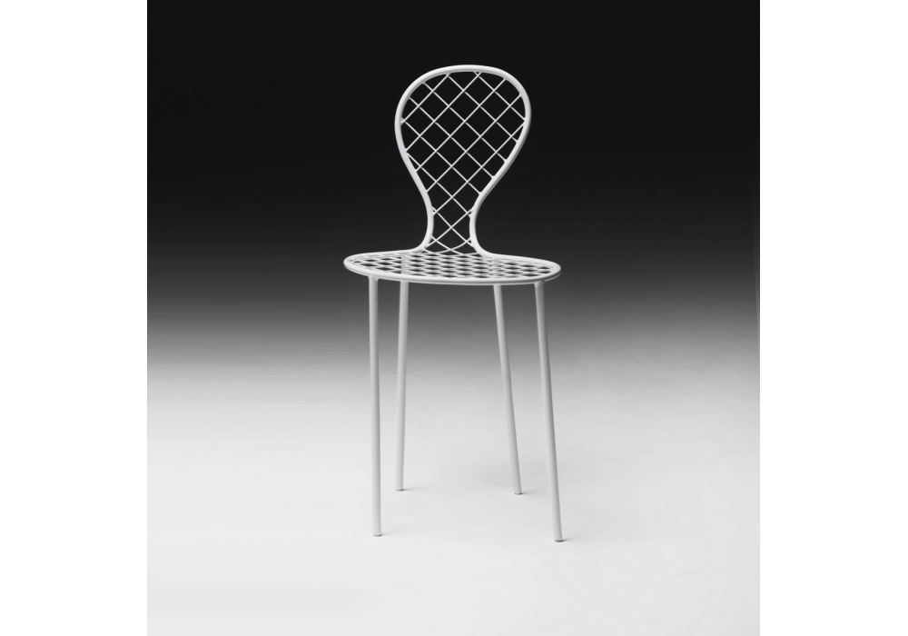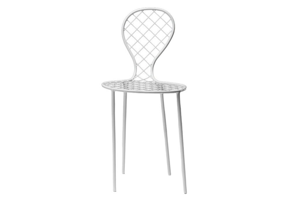 Family Chair designed by Junya Ishigami for Living Divani is a collection of 5 different chairs available for indoor and outdoor. Structure in 12mm steel rod, curved using a CNC machine and legs in 15mm steel rod welded together using internal reinforcement. Seat mesh is in 3mm steel wire with a 40x40mm diagonal weave, individually calandered for each seat. Finish with cataphoresis coating to allow outdoor use and epoxy powder coating in RAL-K7 9016 white.