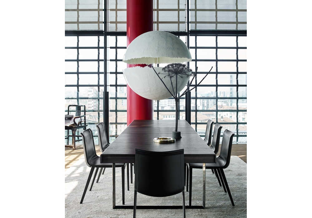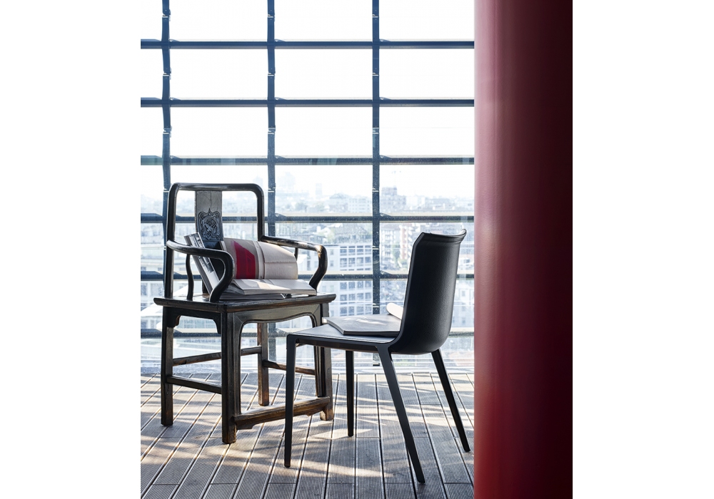 Charlotte von Antonio Citterio für B&B Italia entworfen, ist ein Stuhl mit lackierten Beinen und genarbter Lederpolsterung in verschiedenen Ausführungen.
