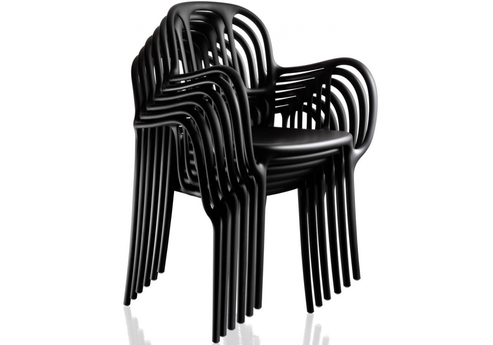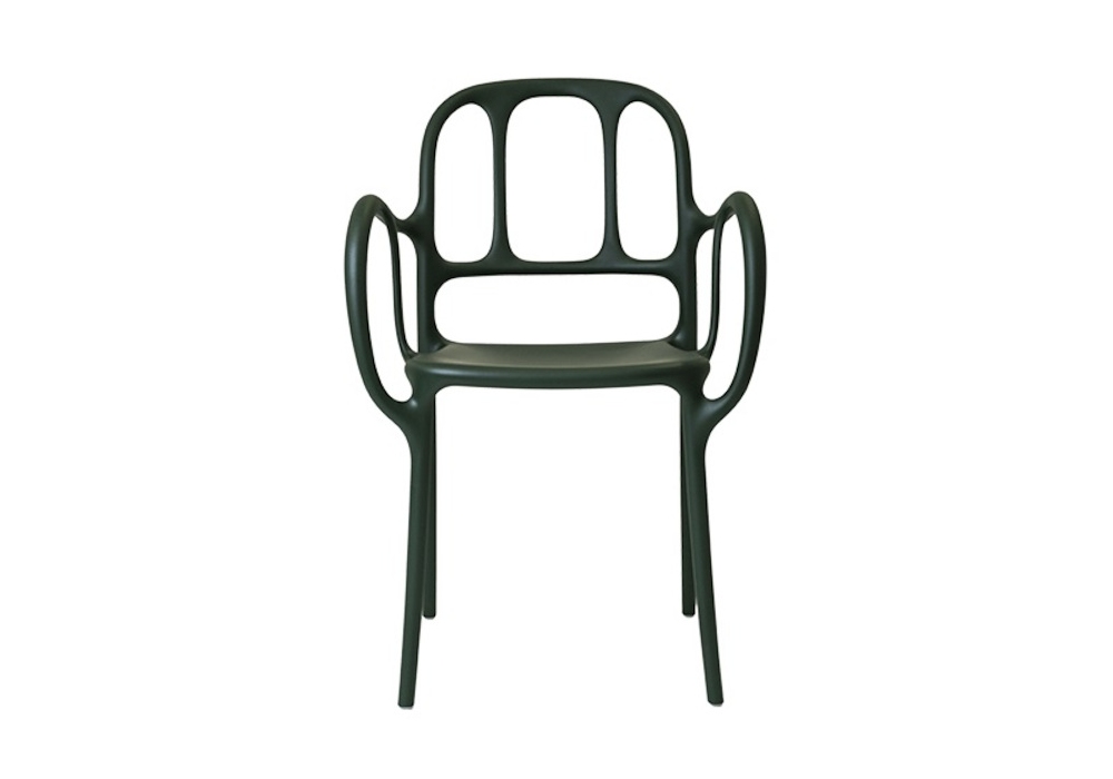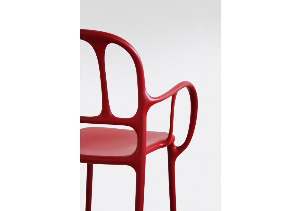 Milà von Jaime Hayón für Magis entworfen, ist ein stapelbarer Stuhl mit Armlehnen aus Polypropylen mit Glasfaserzusatz. Finish mit Seideneffekt. Erhältlich in verschiedenen Farben.