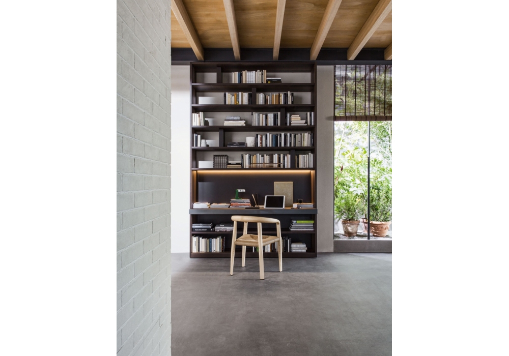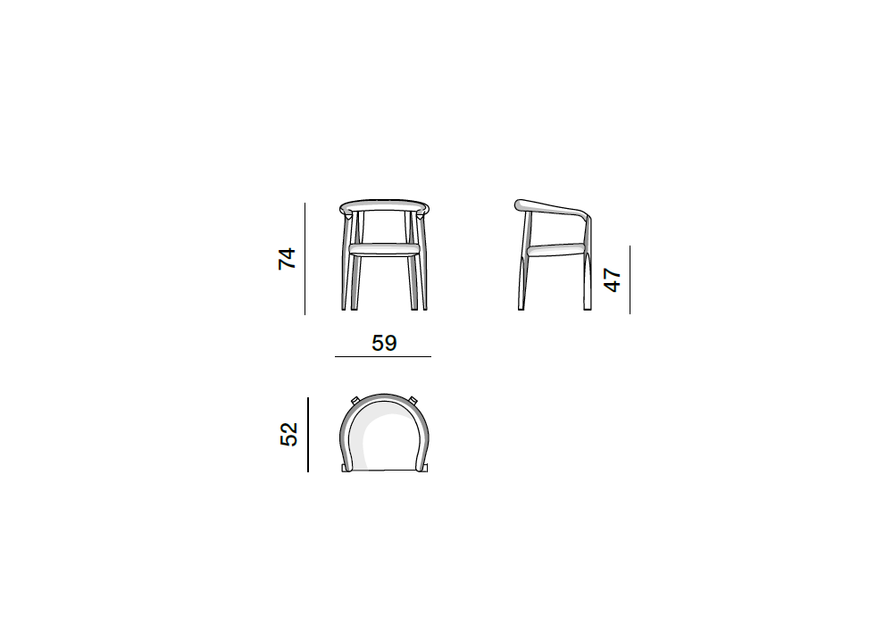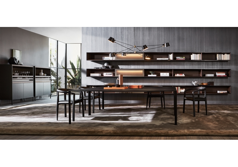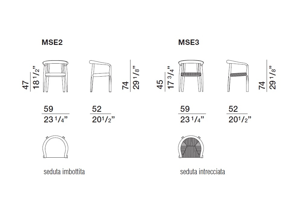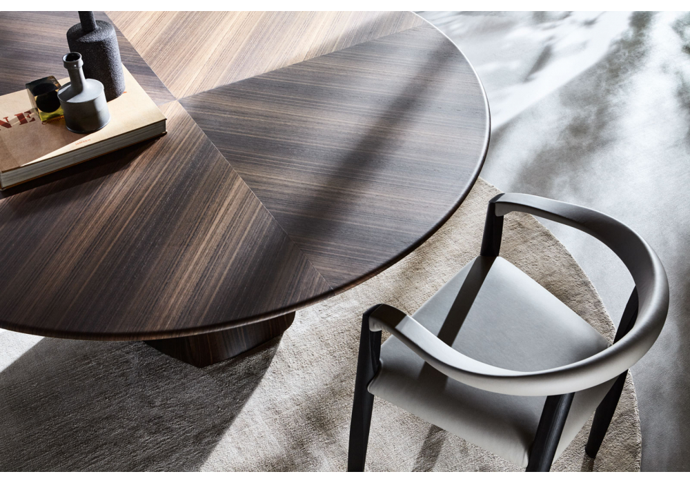MHC.3 Miss von Tobia Scarpa für Molteni&C entworfen, ist ein Stuhl mit Struktur aus schwarzem oder natürlichem Massivholz. Sitz in Ecru oder grauem Stroh. Auch mit gepolstertem Sitz mit Stoff- oder Lederbezug erhältlich.