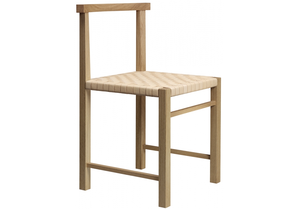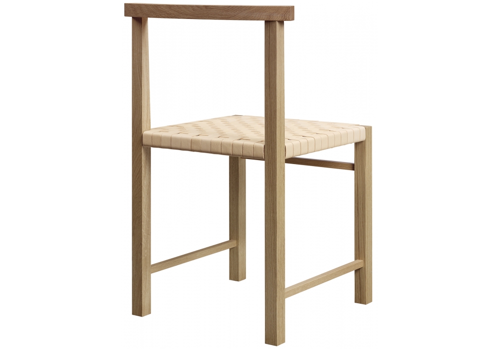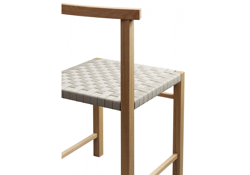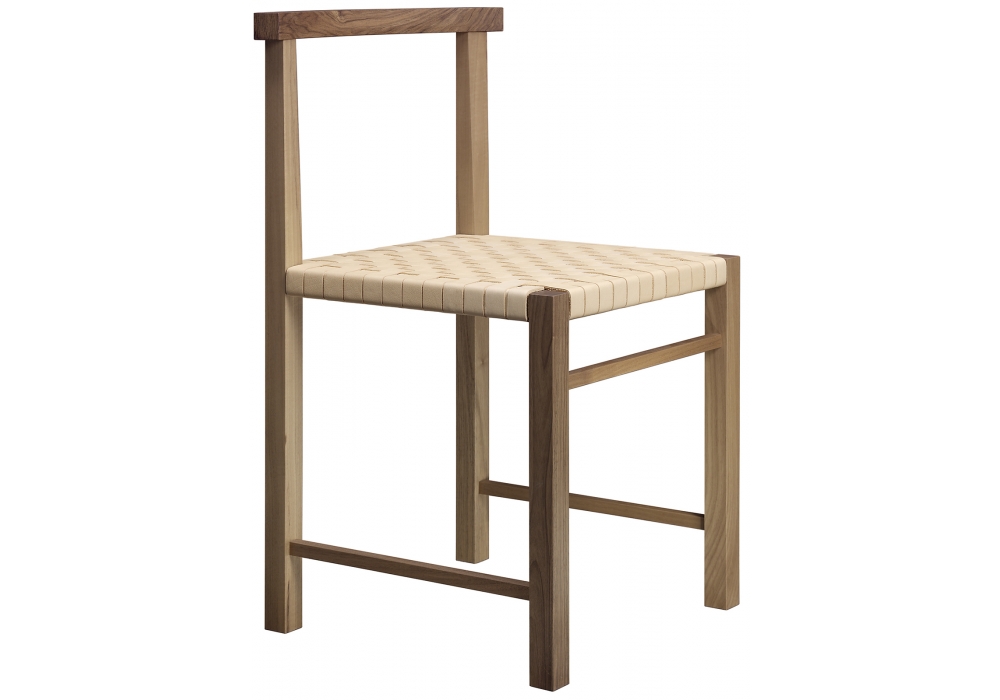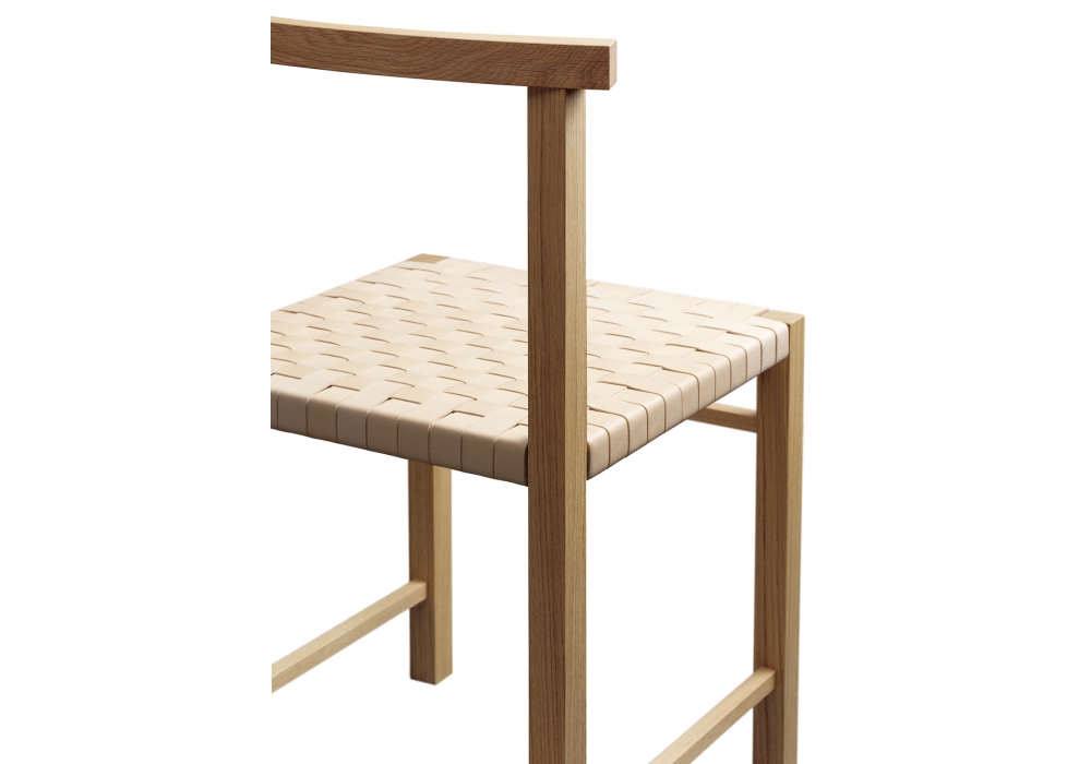 FK02 Karnak designed by Ferdinand Kramer for Gubi is a chair with structure in oak or walnut and fabric or leather seat. Karnak has a linear profile reduced to the essentials, with a curved backrest and hand woven seat, offers considerable comfort. Available in more combinations of the finishes.