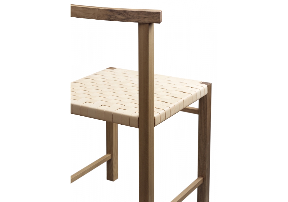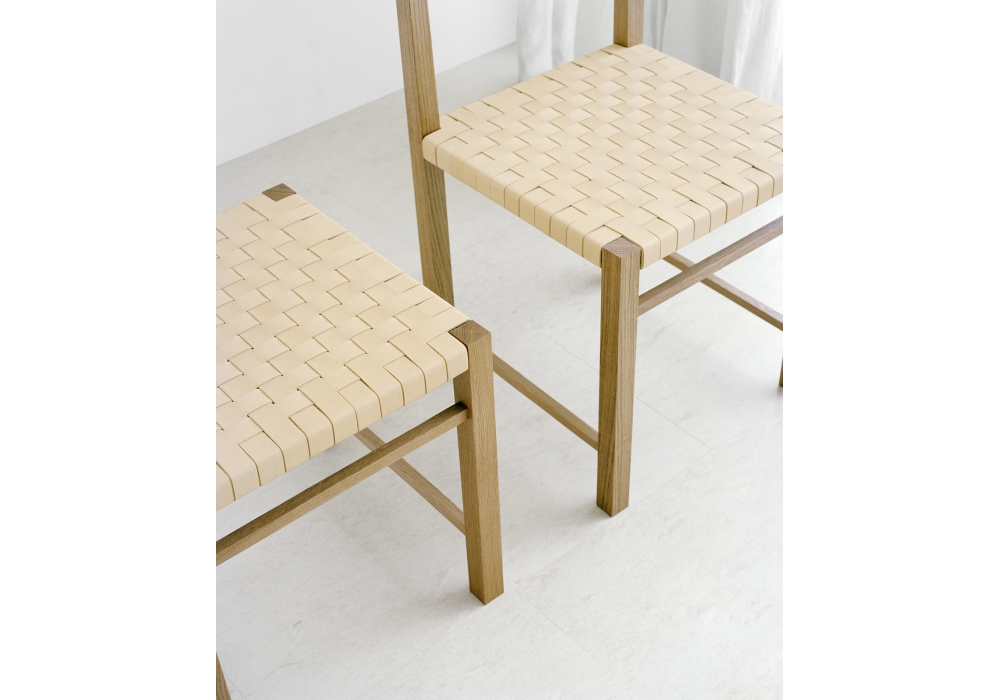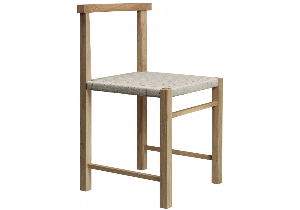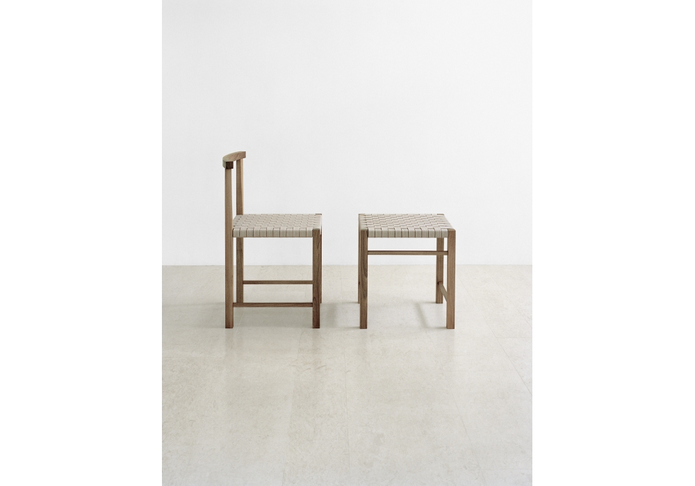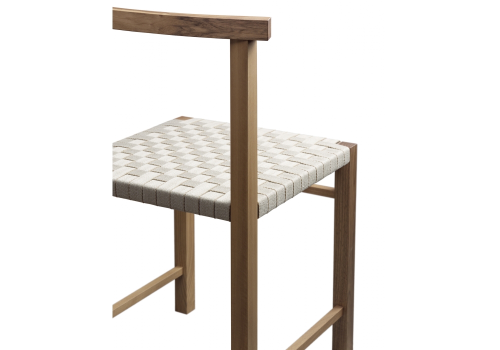 FK02 Karnak designed by Ferdinand Kramer for Gubi is a chair with structure in oak or walnut and fabric or leather seat. Karnak has a linear profile reduced to the essentials, with a curved backrest and hand woven seat, offers considerable comfort. Available in more combinations of the finishes.